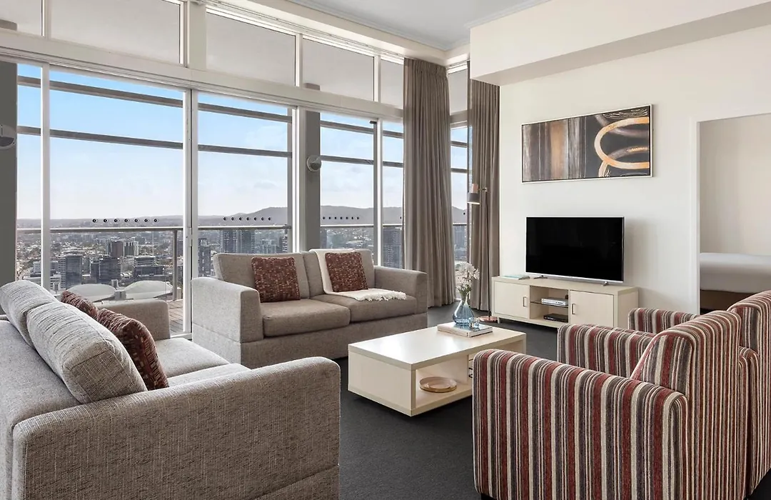 Το Oaks Brisbane Casino Tower Suites Μπρίσμπεϊν, που απέχει 300 μέτρα από Εμπορικό Κέντρο Queen Street, διαθέτει τζακούζι, εξέδρα στον ήλιο και θερμαινόμενη πισίνα στο κατάλυμα. Το Oaks Brisbane Casino Tower Suites είναι δίπλα σε ΠΛατεία King George.